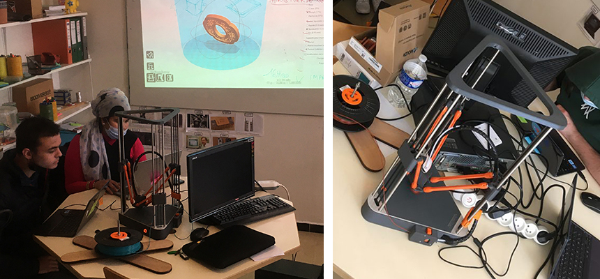 Modélisation 3D Modélisation et impression 3D avec OlivierUtilisation des logiciels Blender et Tinkercad avec réalisation d’un projet collectif : un village en 3D! Module Arduino Session Arduino avec nos intervenants du REPAIR CAFE (qui nous ont aussi diagnostiqué la panne de notre imprimante 3D!) Initiation au code avec SCRATCH Théâtre Session théâtre avec La compagnie …